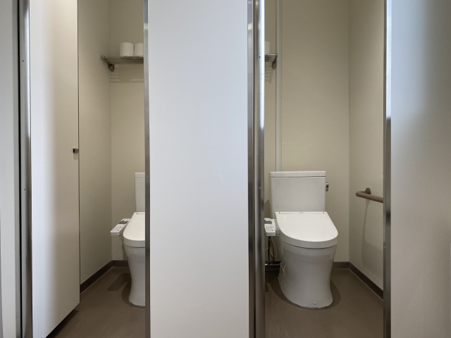 そのトイレは、公衆トイレ気味なのに扉を開けたら電気スイッチがありトイレに行くまで狭い廊下があり手前の扉に男子トイレその奥の扉を開けたら女子トイレの仕様になっている。